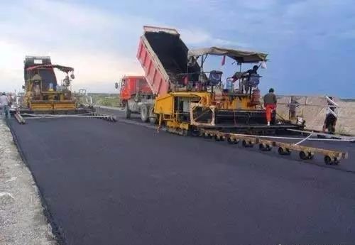 (3)沥青中、上面层摊铺建议采用带有自动找平装置的摊铺机摊铺,即采用平衡梁或雪橇式摊铺机摊铺厚度控制方式,直接接触式平衡梁的轮子不得粘附沥青。铺筑改性沥青或SMA路面时宜采用非接触式平衡梁