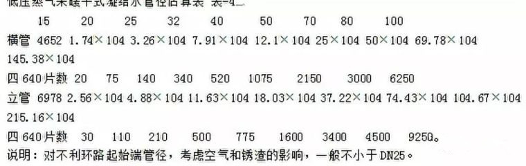 2)利用这些表可按管道负担的散热器片数迅速确定管径,也可用于系统局部变更或检验管道是否超负荷。