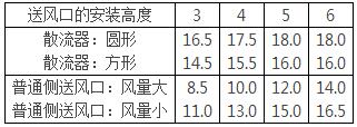 舒适性空调 送风高度H≦5米时,送风温差≦10℃