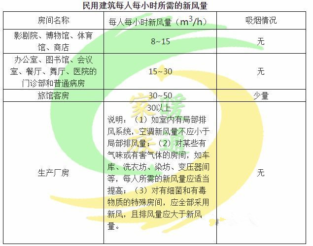 民用建筑每人每小时所需的新风量