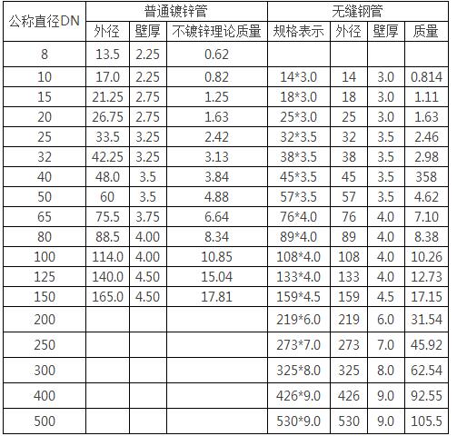 注明:镀锌管比不镀锌钢管重3~6%左右。