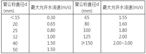 管内水的最大允许水流速