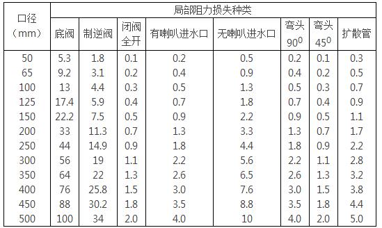 k ------ 局部阻力损失与摩擦阻力损失的比值。局部构件少时,取k = 1.0~2.0;局部构件多时,取k = 3.0~5.0;