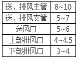 3)地下汽车库的送、排风系统风管风速和送排风口风速取值均可较空调系统大。可参照下表。