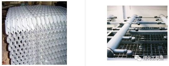 冷却水被喷淋在填料上,向下流入冷却水槽。