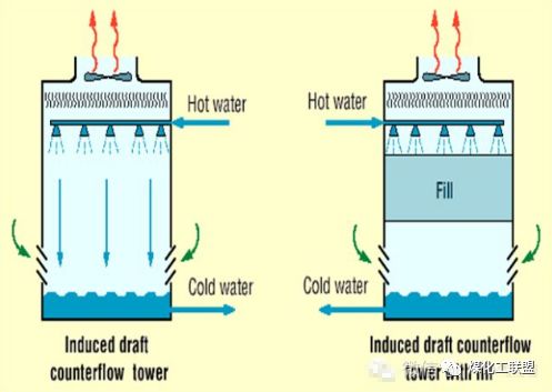 2)空气通过风扇强制诱导,从底部进入冷却塔;使用强制诱导风扇。