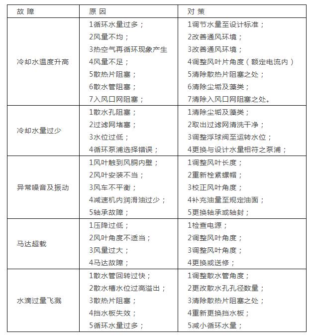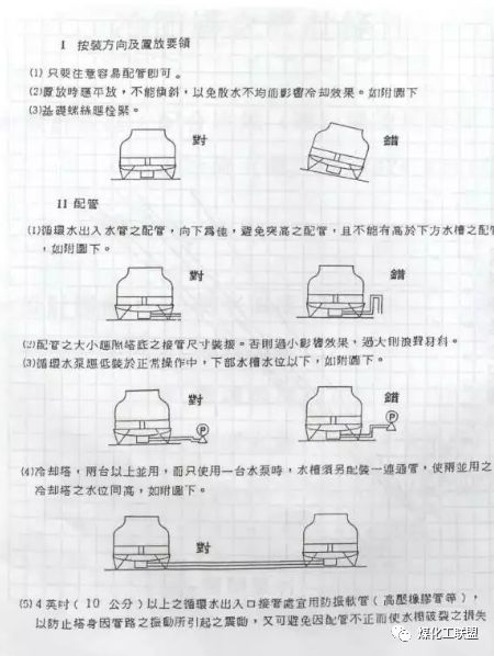 c、冷却塔在停机一段时间后重新运转,此时必须检查马达绝缘是否正常?然后再参考操做前准备事项之说明进行操作。