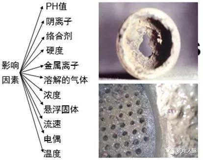 冷却水中金属换热设备腐蚀的影响因素很多,概括起来可以分为化学因素、物理因素和微生物因素。先仅讨论其中的一些化学因素和物理因素,微生物方面待在谈微生物时再详细讨论。