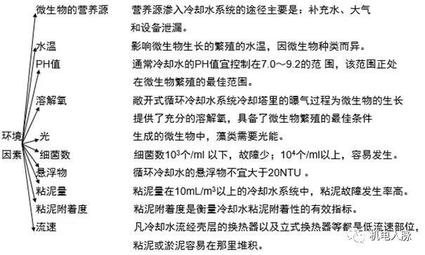 影响微生物和粘泥的环境因素很多,下表逐一列出: