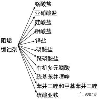 循环冷却水系统中控制金属腐蚀的第一种方法是向冷却水系统中添加阻垢缓蚀剂。可供冷却水系统采用的缓蚀剂并不是很多,现将敞开式和密闭式冷却水系统中几种常用的阻垢缓蚀剂罗列如下: