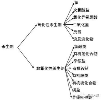 冷却水系统中微生物的主要控制方法之一就是添加杀生剂。人们通常把冷却水杀生剂分为两大类:氧化性杀生剂和非氧化性杀生剂。