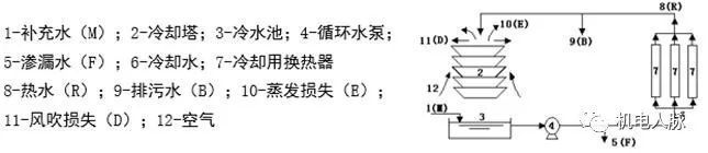 矿物质和离子含量也不断被浓缩增加。为了维持各种矿物质和离子含量稳定在某一个定值上,必须对系统补充一定量的冷却水(补充水);并排出一定量的浓缩水(排污水)。其流程如图所示:
