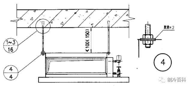 卧式风机盘管吊杆与楼板固定的节点: