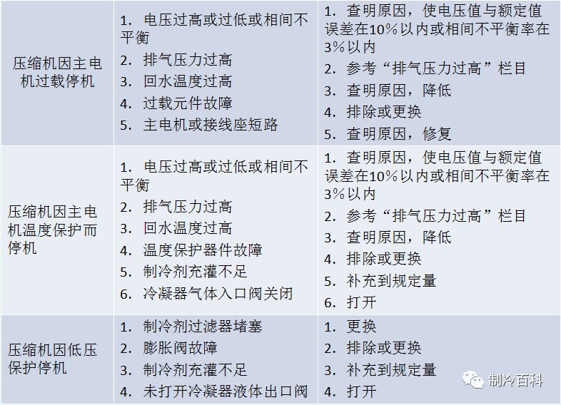 冷水机组出现问题,应将从有关指示仪表和看、听、摸等方式得到的冷水机组运行的数据和材料进行综合分析,找出故障的基本原因,考虑应采取什么样的应急措施。 下面附螺杆和离心冷水机组常见故障与处理表,希望对你有用。