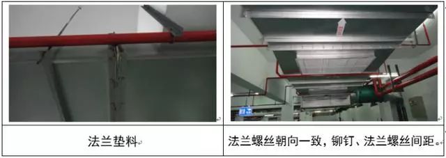 3.5 风管连接法兰螺母宜在同一侧(朝向一致),法兰垫片应符合系统功能要求,厚度不应小于3mm,垫片不应凸入风管内,亦不应突出法兰外。