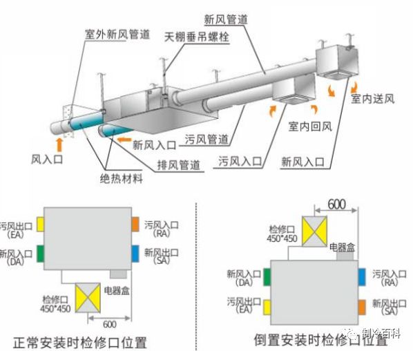 引入新风,同时通过新排风的能量回收,处理掉一部分新风的负荷,剩余部分则由室内机来负担。全热回收的排风口可以与室外机位置相结合。