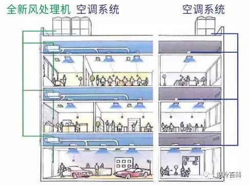 以上两种简单粗暴,但条条大路通罗马,还有其他的新风处理方式,比如风冷热泵冷水机组为新风机提供冷热源、比如直膨式的新风机屋顶机等等