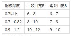 9、风管的咬口形式做如下选择:矩形风管或配件的四角组合采用联合角咬口。咬口宽度和留量根据板材厚度定,具体尺寸见下表:
