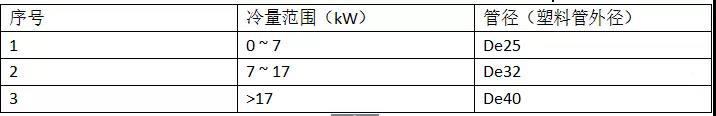 2、风盘接管管径:风机盘管接管管径根据末端风机盘管的冷量累计值,按下表确定: