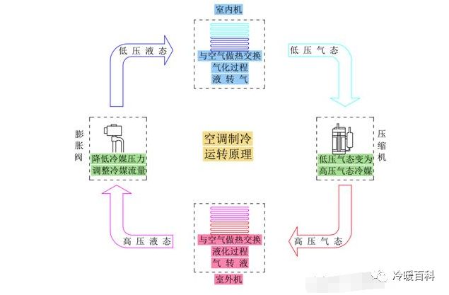 看一下最初这幅空调制冷原理图:
