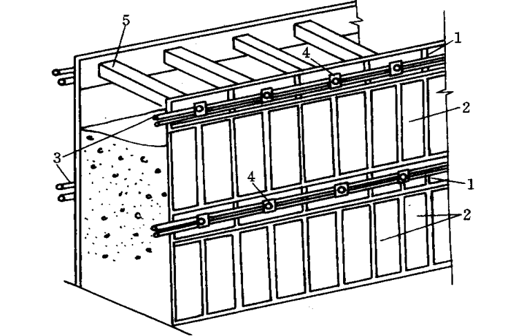 (3)新浇筑块的模板已架立,钢筋、预埋料已安设。