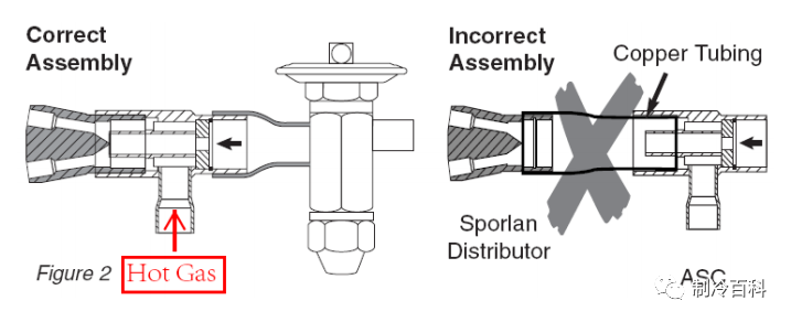2、分液器与膨胀阀之间距离尽可能短,如果可能可能直接把分液器焊在热力膨胀阀的出口,如果不能在一起,那么距离也不能超过 24。
