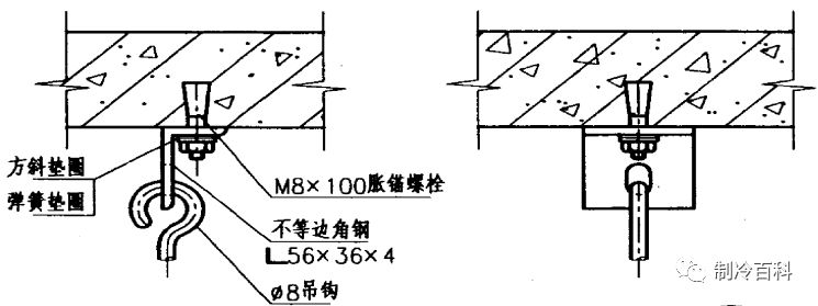 卧式风机盘管吊杆与楼板固定的节点: