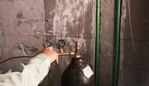 第三次,师傅向管路中通入40公斤氮气,使管路内部呈高压,对系统保压。