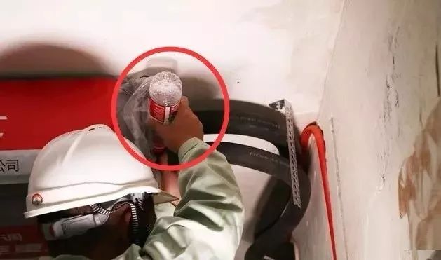 安装师傅在保温层的断面上涂抹粘结剂进行粘结。配管的保温棉连接部分要尤其注意,必须充分保温,一点也马虎不得。