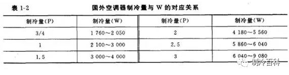 另外,国外对空调器的制冷量常用马力(hp,俗称匹,用P表示)来分挡,匹与制冷量的对应关系如表。