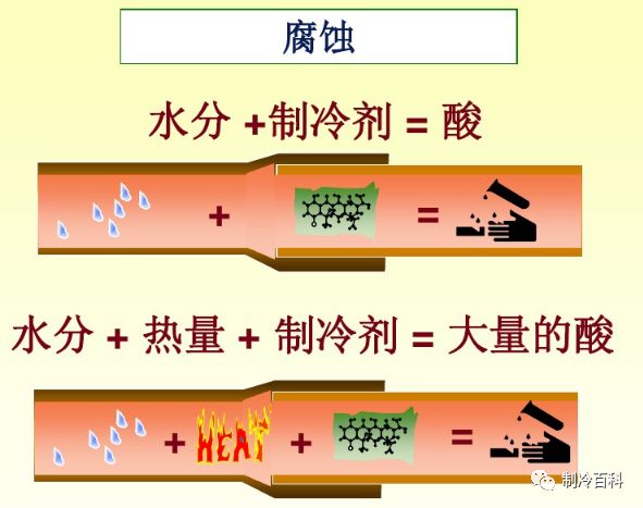 2、腐蚀管道水蒸气进入制冷系统,系统的含水量增加,引起管道和设备的腐蚀和堵塞。