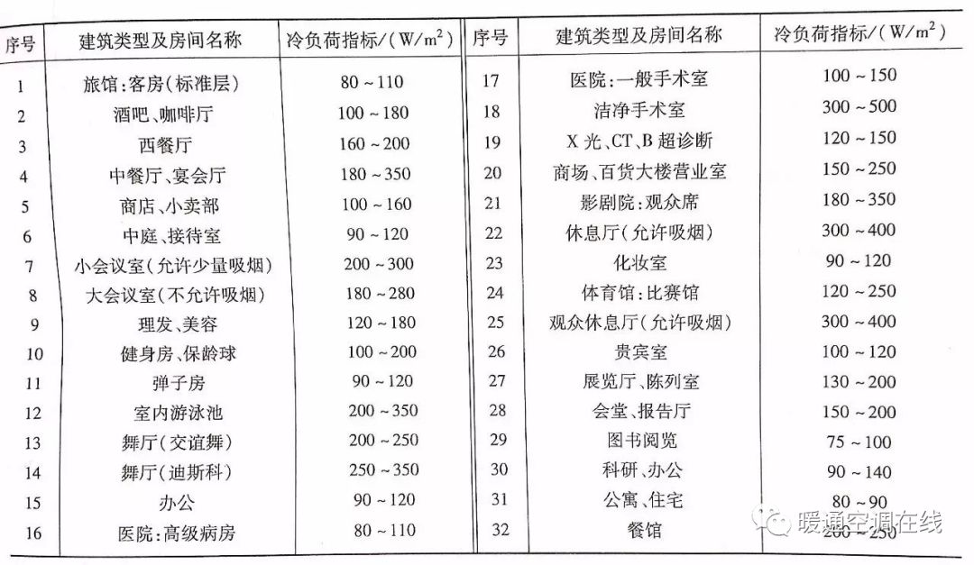 将负荷概算指标乘以建筑物内的空调面积,即得夏季空调制冷系统总负荷的估算值。