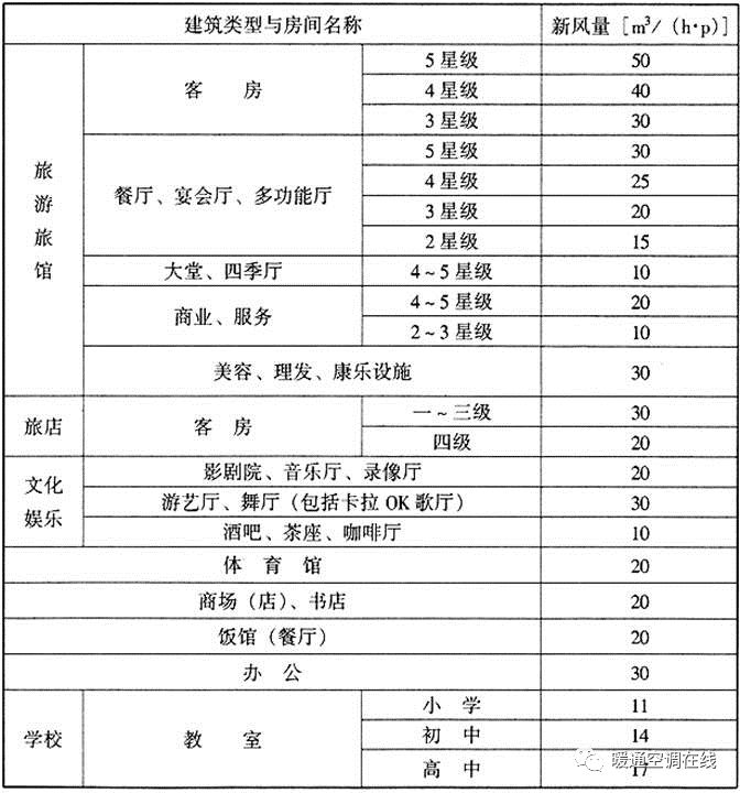 在实际工程中,如果按上述方法所确定的空调系统的新风量不足总风量的10%时,新风量应按总风量的10%计算,以确保室内空气的卫生和安全。