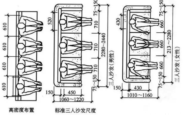 (3)沙发:宽:600800mm;高:350400mm;靠背面:1000mm。