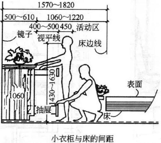(4)写字台:长;11001500mm;宽450600mml高700750mm。