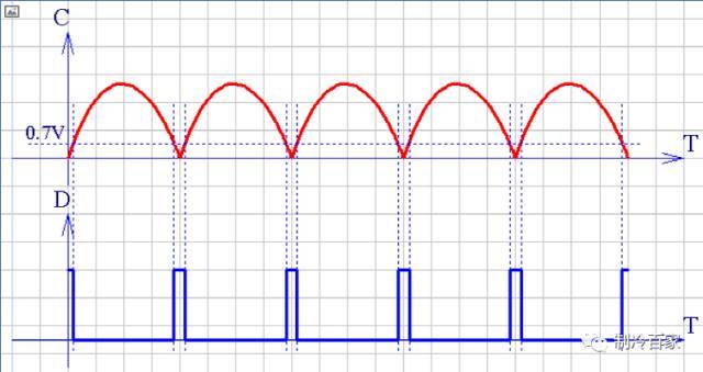 电网交流电源经变压器降压后,先经过整流,在 DC 这个形成脉动直流波形,DC 点波形如下图: