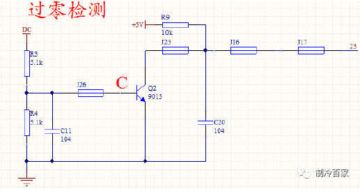 这样通过三极管的反复导通、截止,在芯片的过零引脚上就会形成 100Hz 脉冲波形,芯片通过判断,检测电压的零点。