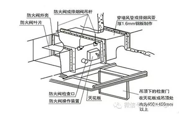 防火阀或排烟阀在吊顶内安装示意图