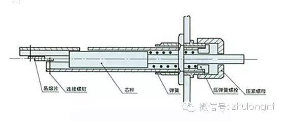 ②旋开压弹簧螺栓,松开弹簧,退下易熔片连接螺钉,取下易熔片。