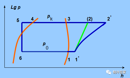 表示制冷剂蒸气在制冷压缩机内实际的非等熵压缩过程;
