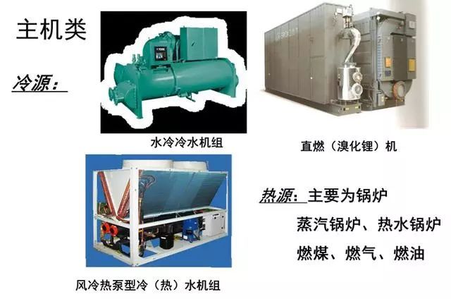 冷源:冷水机组;冷却水泵,冷冻水泵,冷却塔。