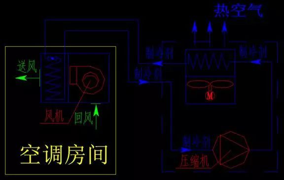 这类系统中小型各公共建筑、或小型住宅建筑(如别墅、大户型单元住宅)常用空调形式