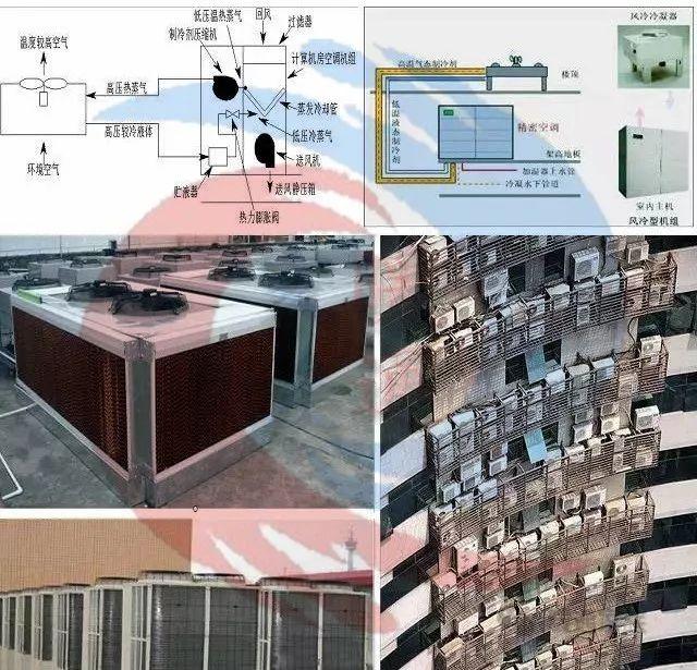1、独立的风冷专用空调:接蒸发式的独立的分散式、定风量、低风速、对流换热、封闭式(混合)、单区应用的工艺性空调。具备:制冷、加热、去湿、加湿、空气过滤、提供机房气流循环,以及自动调节和远程监控等功能。