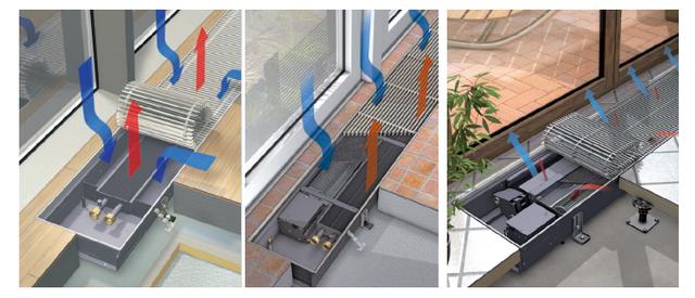 概念:将换热元件放置于地板沟槽空间内,配合建筑物大面积玻璃幕墙和落地窗的安装,可隐身为建筑物提供冷热负荷,既能采暖、制冷,又美观、节省空间。