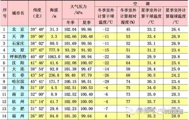 关系最密切的主要是一些温湿度参数,如计算通过围护结构传入室内或由室内传至室外的热量时,涉及到的室外空气(干球)温度;计算加热或冷却室外空气所需热、冷量以及确定室外新风状态时,要涉及到的室外空气湿球温度等参数。