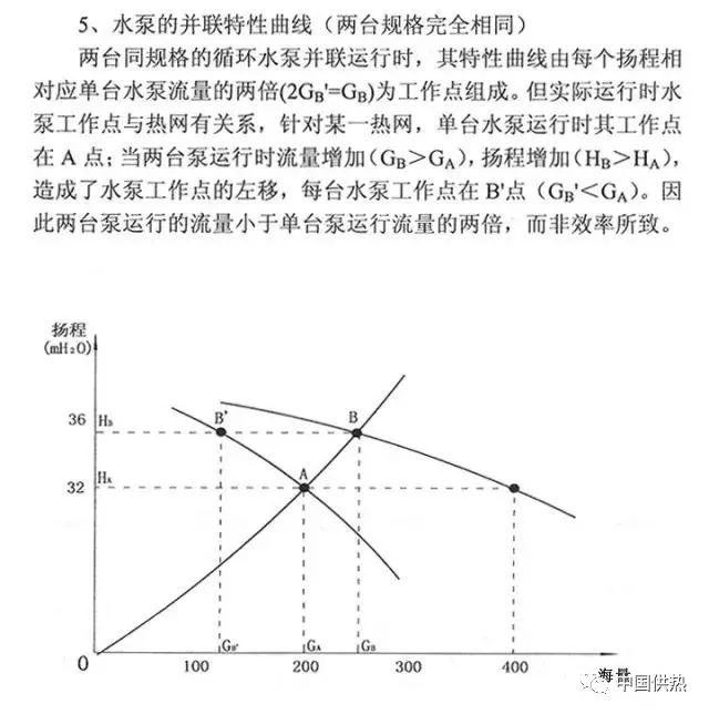 我国《工厂热水采暖操作规范》中说明:在热水采暖系统中,系统的水力工况不可能绝对平衡,尤其是在用户入口装置没有自动的情况下,热水采暖系统的水力失调不可能完全避免(公众号:泵管家)。由于系统的水力失调,系统的实际流量将大于计算流量。其结果是设计的工作点向G-H特性曲线的右方偏移,工作点偏移的程度与系统水力失调的大小有关。