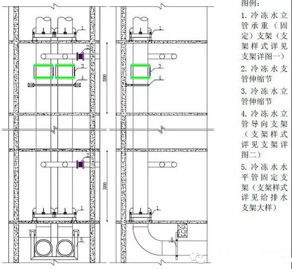 3)冷却水管道承重支架一般位于管井的最下方,设置数量根据设计要求或受力计算决定;