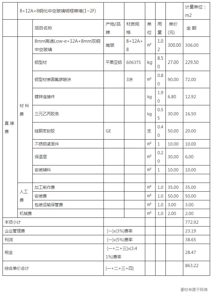 其它费用也占较大比例,尤其是规模大、结构复杂、施工难度高的玻璃幕墙,甚至高达10-20%