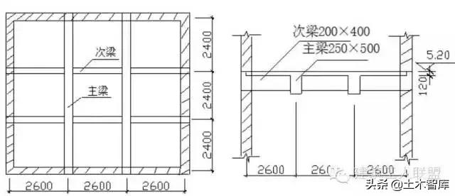 [例]某现浇钢筋混凝土有梁板,如图所示,胶合板模板,钢支撑,计算有梁板模板工程量,确定定额项目。
