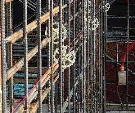 2、 底部采用水泥垫块或碎大理石垫块,侧面采用塑料或其它垫块,控制保护层厚度;